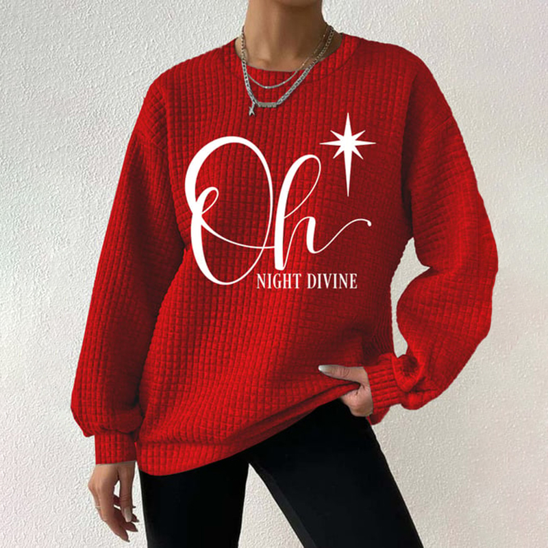 Christmas Oh Night Divine Casual Waffle Sweatshirt