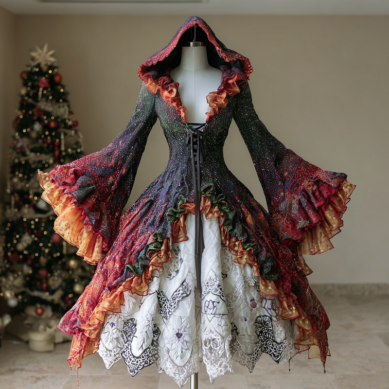 CHRISTMAS THEMED ELEGANT CONTRAST COLOR KNITTED HOODED DRESS 1c6e