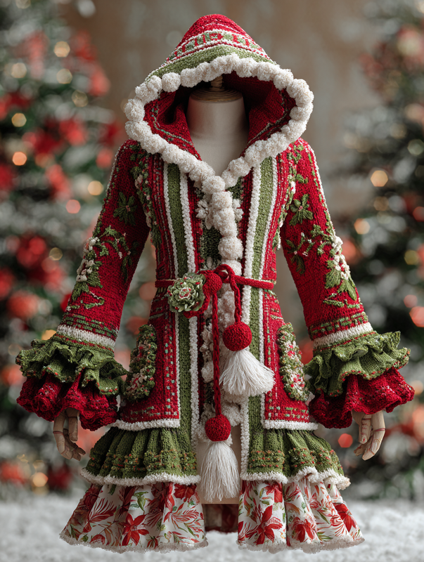 CHRISTMAS THEMED ELEGANT CONTRAST COLOR KNITTED HOODED DRESS 89f0
