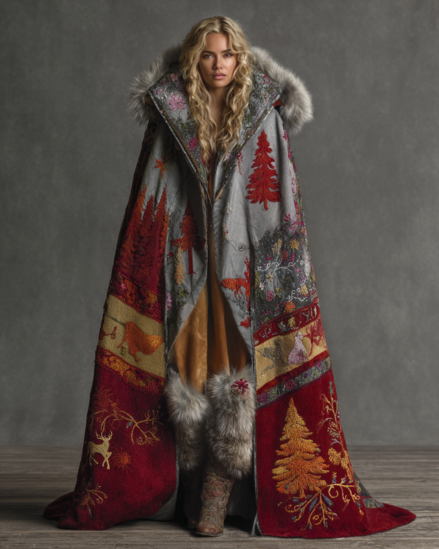 Christmas themed elegant contrasting color hooded cape top coat 2235
