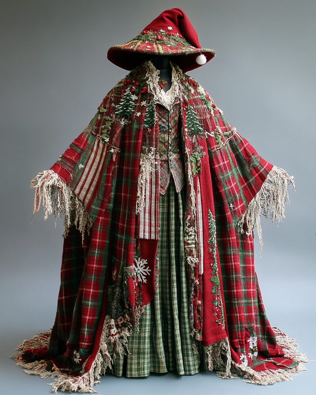 Christmas Themed Voluminous Cape Coat e6b8