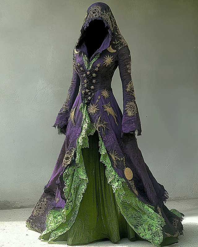 Halloween Contrast Star And Moon Embroidered Lace Hooded Dress 40d7