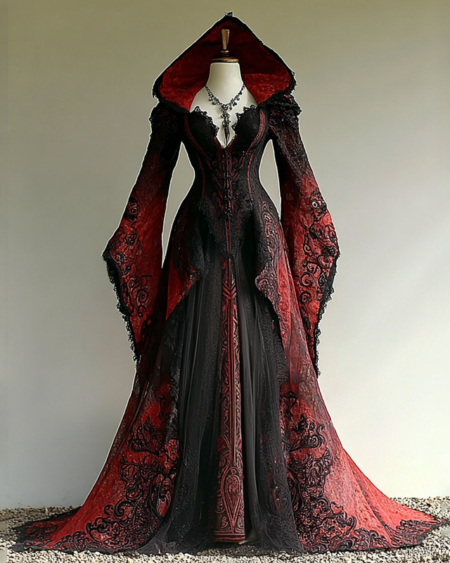 Halloween themed rose embroidered contrasting color witch cosplay costume 3e7f