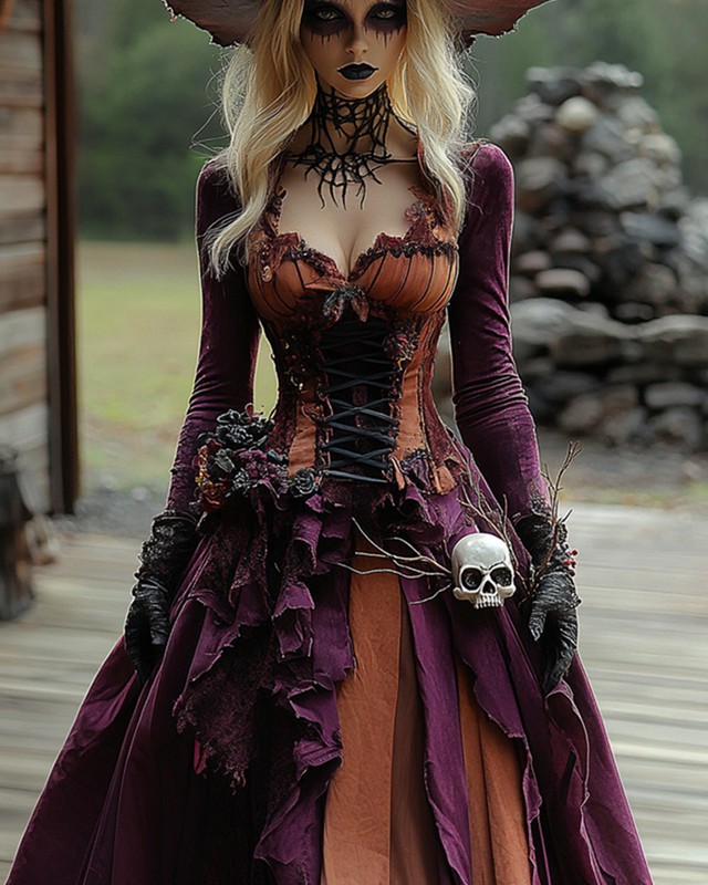 Halloween themed skull embroidered witch cosplay costume 73fd