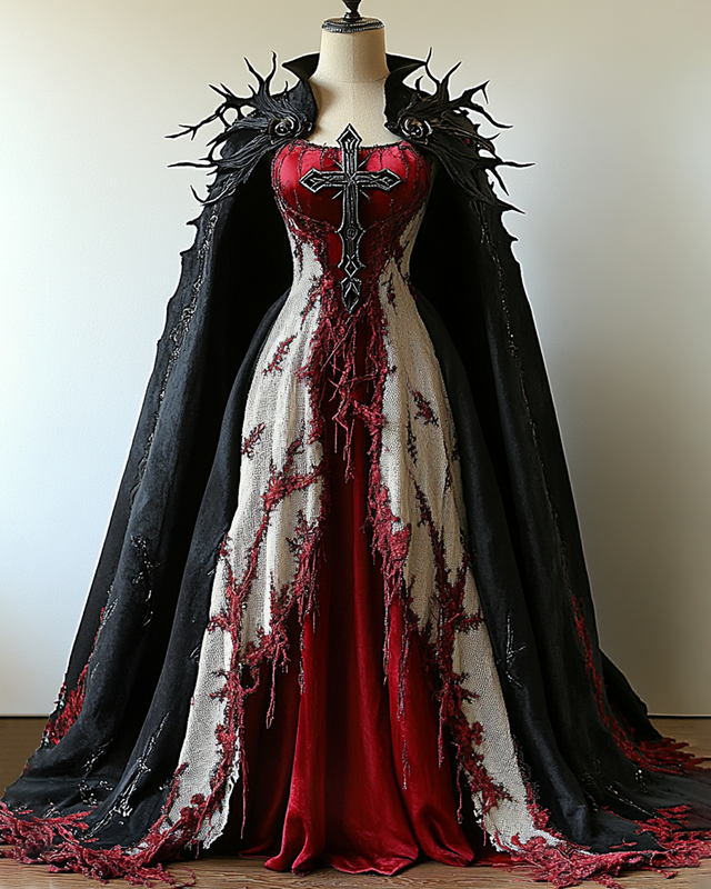 Halloween Themed Contrasting Cross Linen And Velvet Dress 5e93
