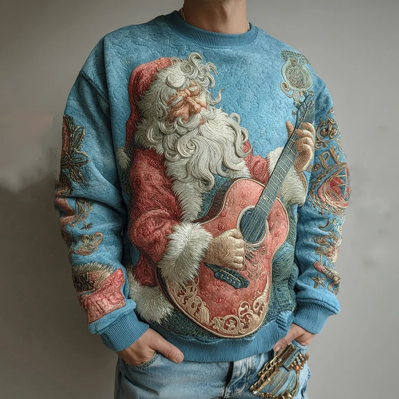 Men's Sequin Santa Claus Dj Art Print Casual Sweatshirt