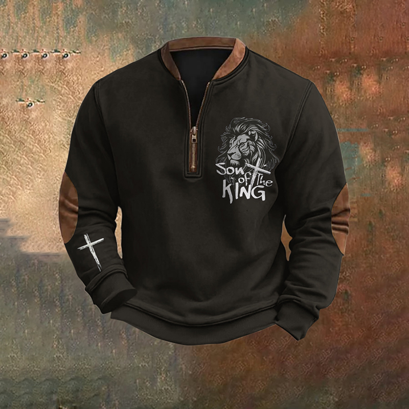 Men's Vintage Son Of The King Faith Graphics Printed Zip Collar Mens Christian Sweatshirt
