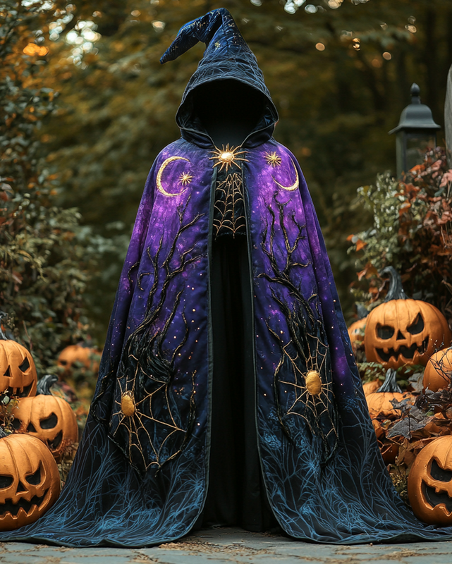 Star, Moon and Spider Web Embroidered Gradient Cape 6f4f