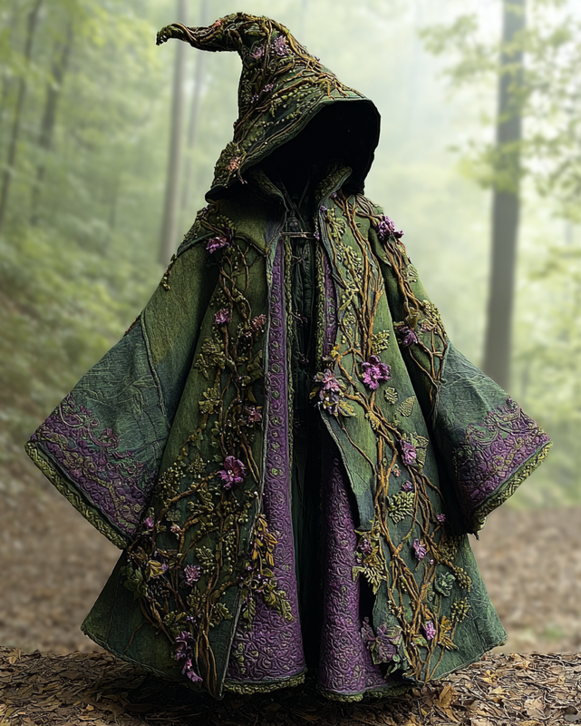 Floral and Root Embroidered Forest Magic Cape 72d8