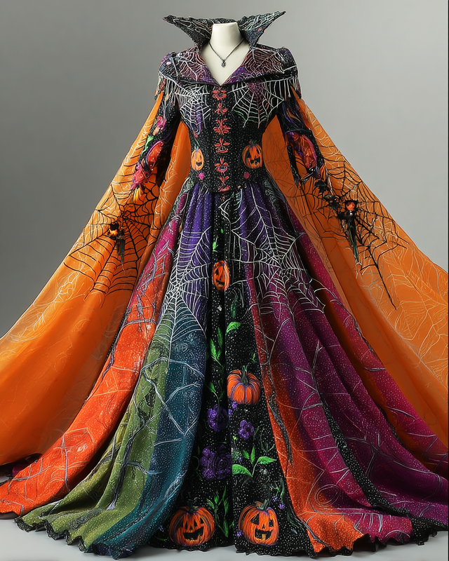 Women's Elegant Halloween Contrast Color Slim Fit Cape Dress 4ed0