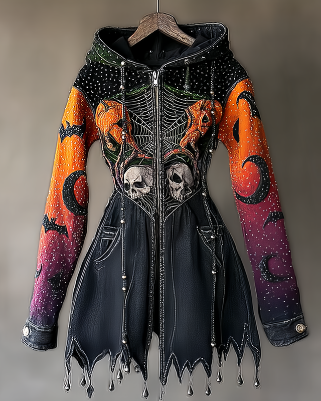 Women's Elegant Halloween Contrast Color Slim Fit Sweatshirt Mini Dress a6cb