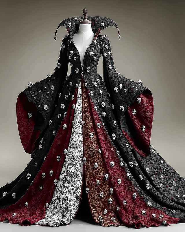 Women's Elegant Halloween Skull Contrast Cape Dress 83b1