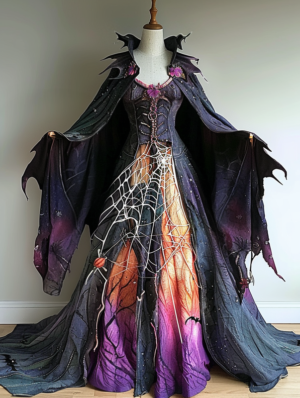 WOMEN'S HALLOWEEN PARTY CONTRAST COLOR LOOSE WIDE SLEEVE CAPE DRESS 11bd