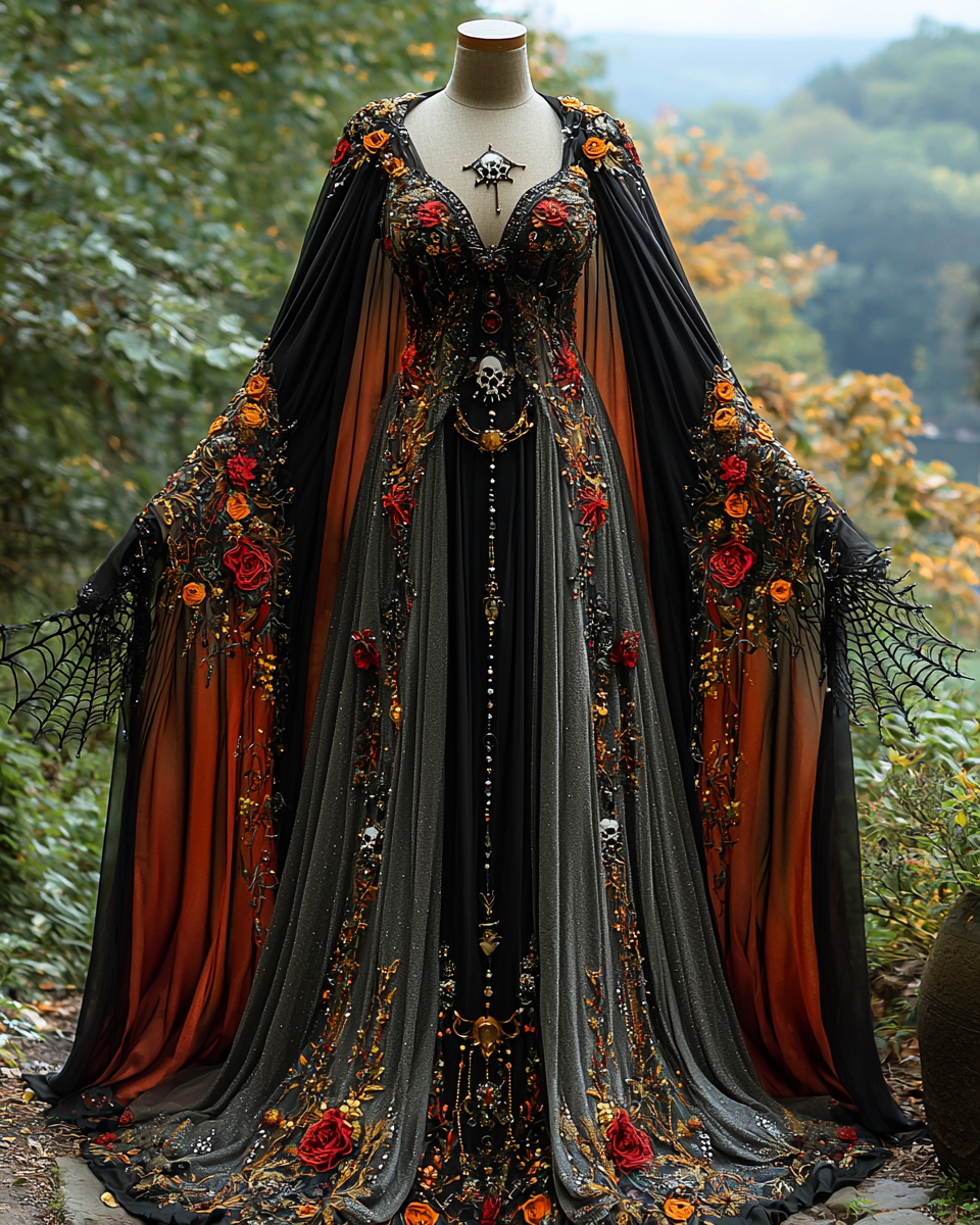 Women's Halloween Bat Wing Sleeve Contrast Dress 9dc5