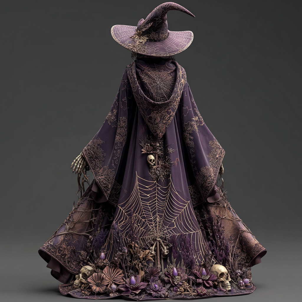 Women's Halloween Spiderweb Skull Floral Witch Hooded Cape