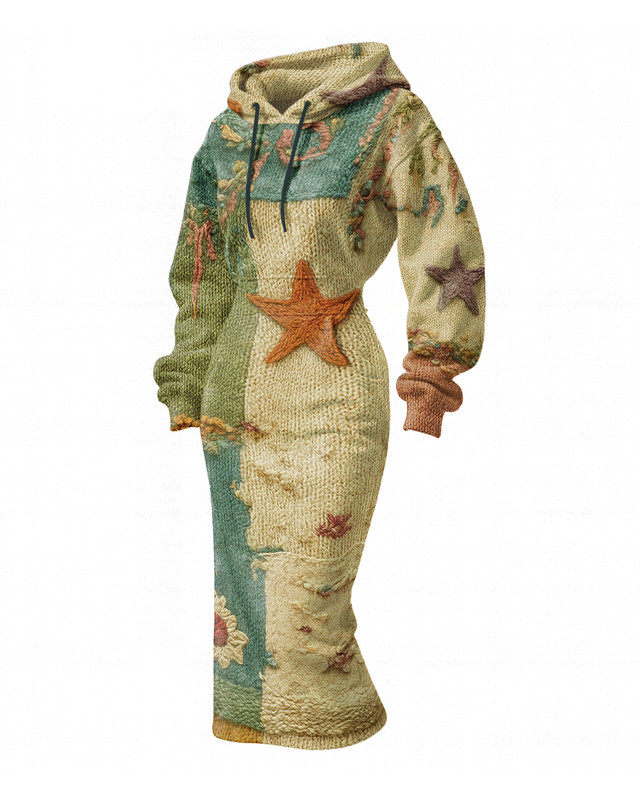 Women's Halloween themed embroidered contrasting color long hooded sweatshirt dress 6000