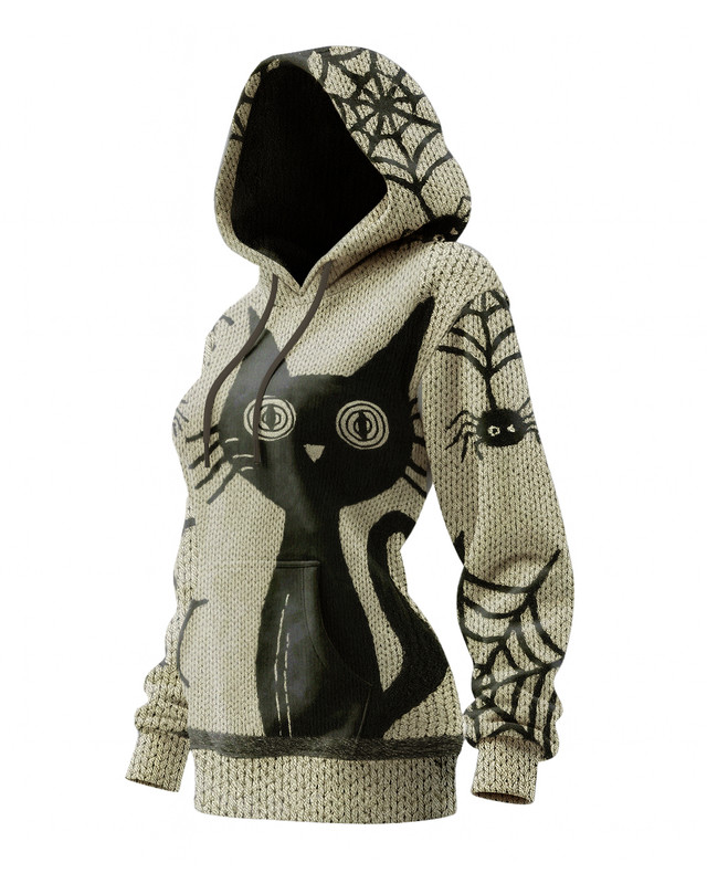 Women's Halloween themed embroidered contrasting color long hooded sweatshirt dress dd10