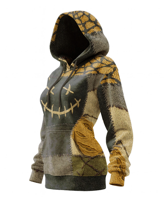 Women's Halloween themed embroidered contrasting color long hooded sweatshirt dress e63f