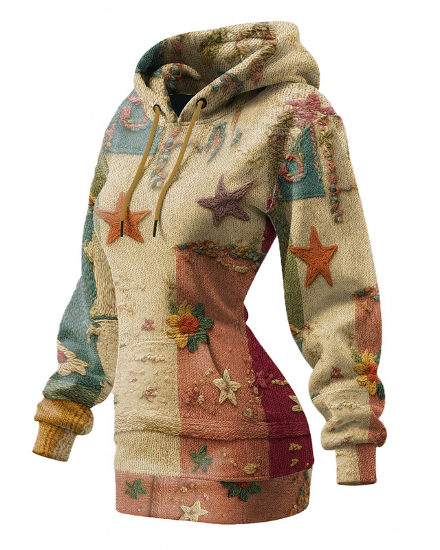 Women's Star and Moon Embroidered Long Hooded Sweatshirt Dress 05a5
