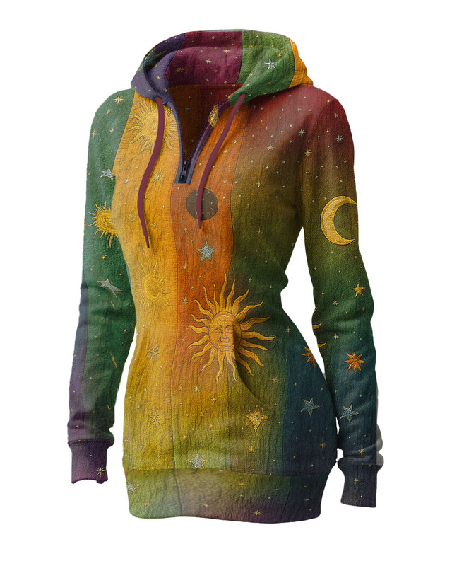 Women's Star and Moon Embroidered Hooded Sweatshirt Dress 8356